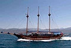 Azerbaycan'da 2003'te kurulan Mavi Tur'un Gulet Bahriyeli B adlı teknesi, 40 metre uzunluğunda ve 2 çift kişilik ile 6 tek kişilik kabin sunmaktadır. | 1 gün € Detay | |